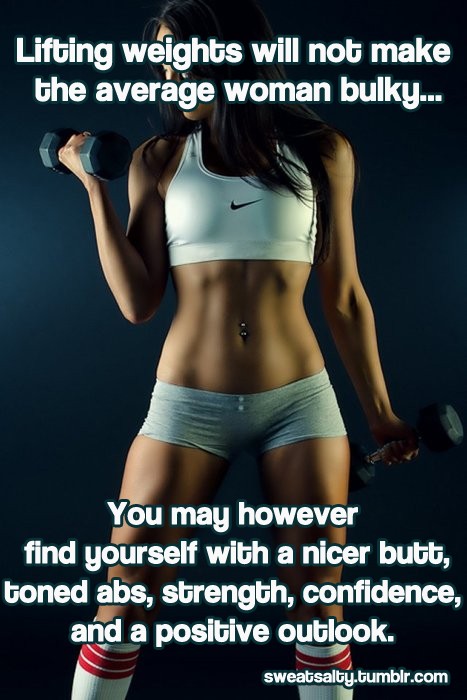 If you’re a woman, stop discriminating against weights because you’re afraid that they’ll make you “bulky.” What makes you bulky? Fat.