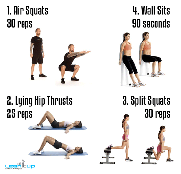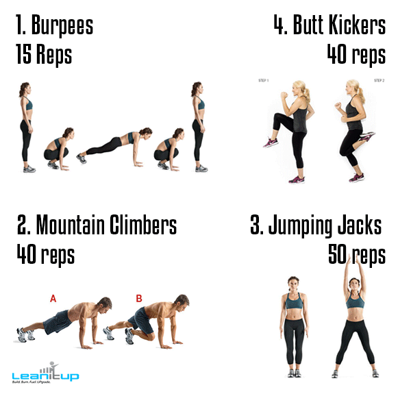 Complete a total of THREE ROUNDS. Effectively, you’ll do circuits 1 → 2 → 3 → 4 (that’s 1 round) and then repeat it two more times. Do each individual circuit without rest, if possible, and rest for 1 minute in between each circuit. Take a longer breather between rounds.