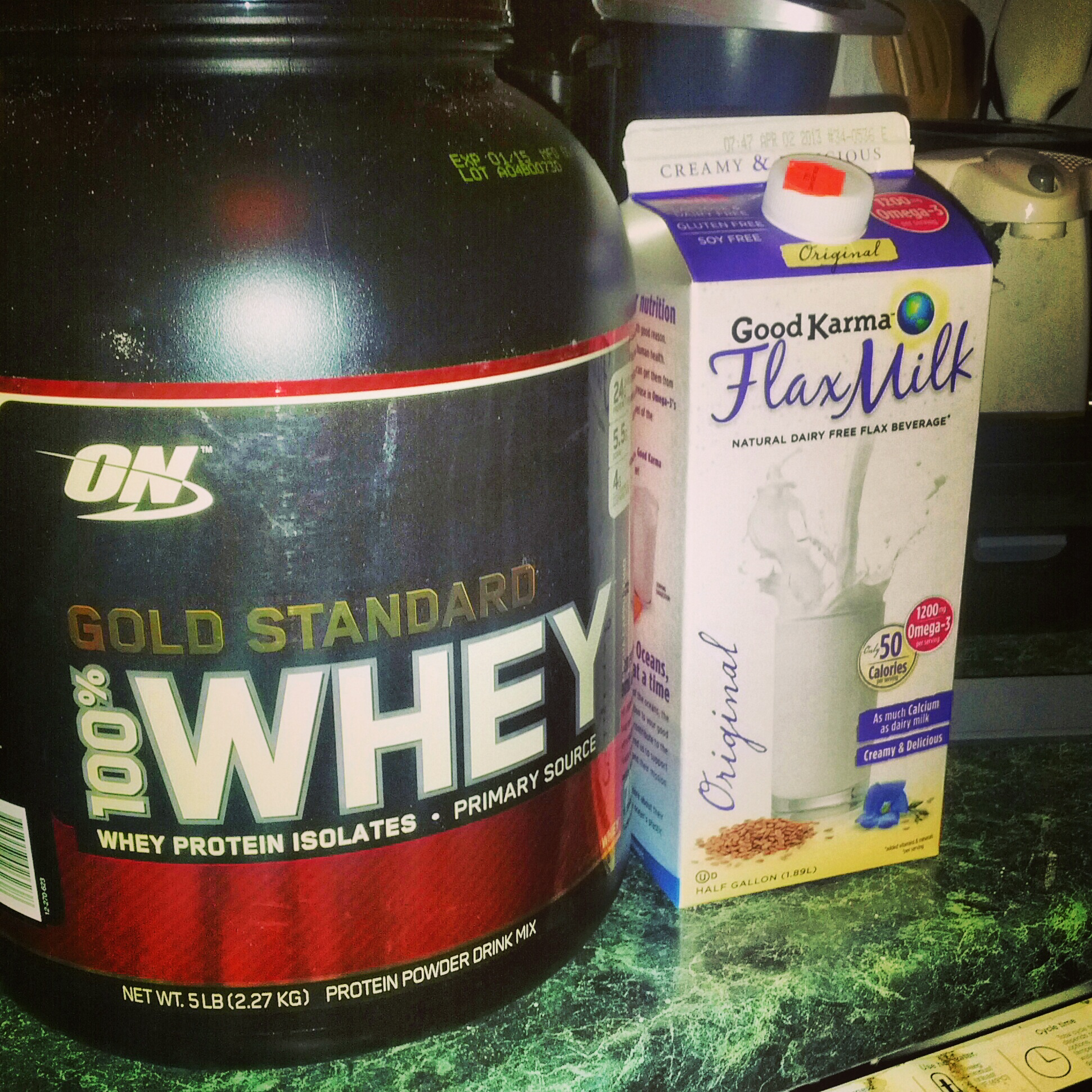 - 1 Scoop Optimum Nutrition Mocha Cappuccino Whey Protein Powder (available on Amazon)