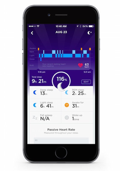 The Jawbone UP4 is the one exception, and the only tracker I’d buy if sleep tracking is your main priority. The app is incredibly granular and spits out detailed charts, graphs, and data by the hour, all of which provide a detailed breakdown of deep/light sleep cycles, REM cycles, and your resting heart rate throughout the night.